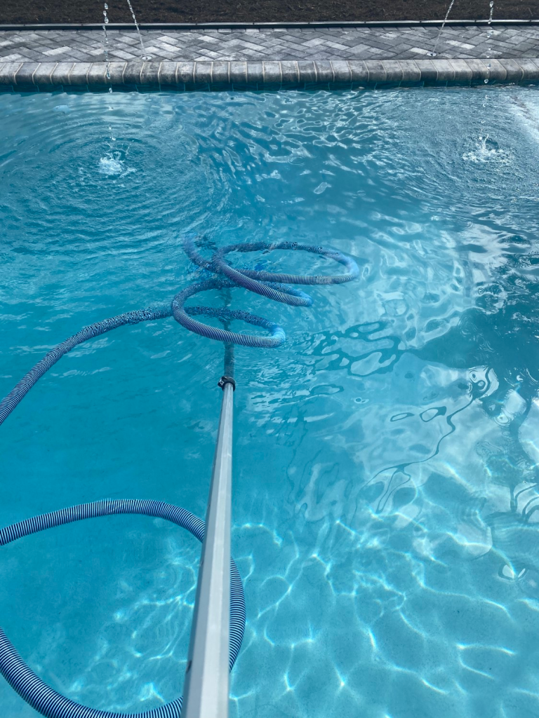 - Vacuum the pool to remove dirt from the floor.